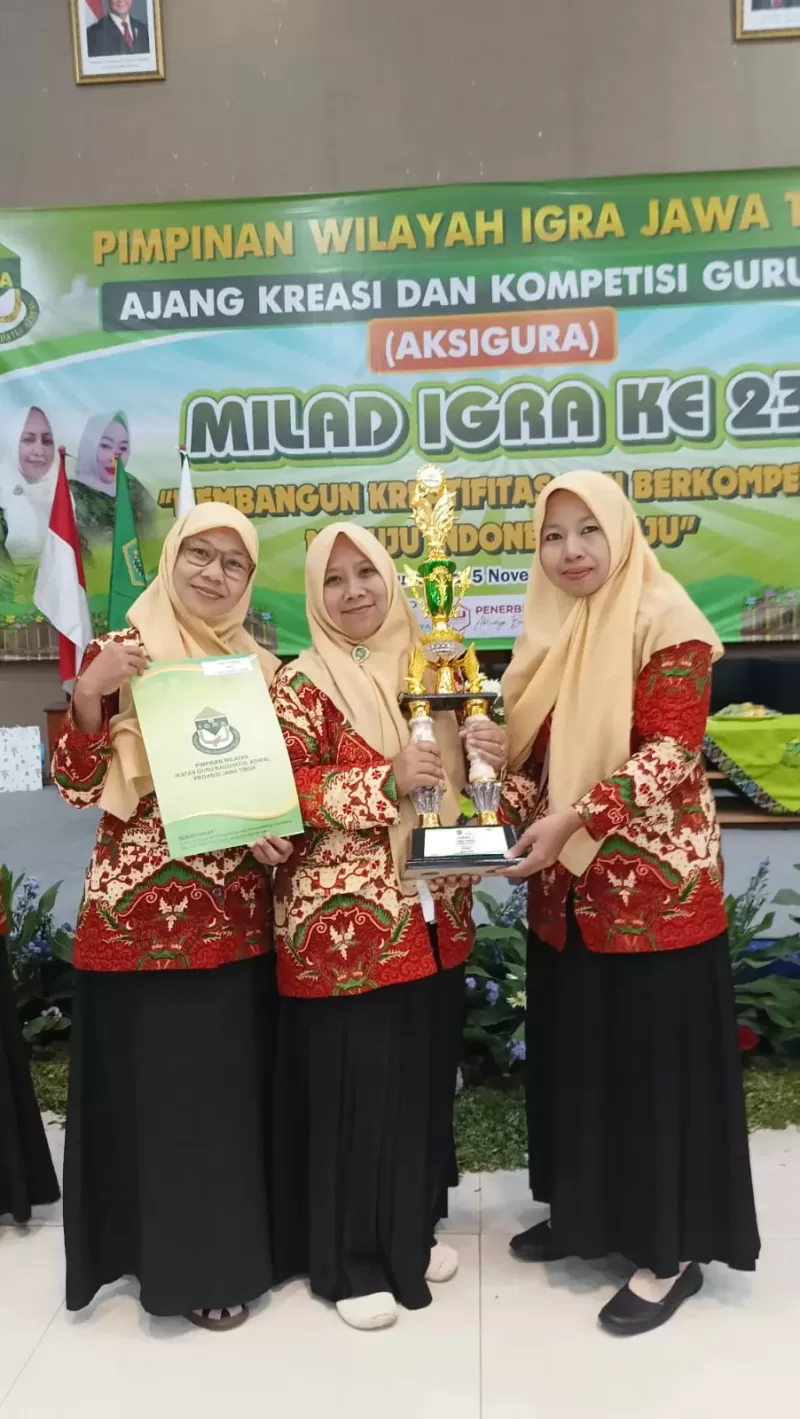 SURABAYA – Prestasi membanggakan datang dari dunia pendidikan anak usia dini di Jawa Timur. Dua guru berdedikasi dari RA Umi Sundari, Sri Utamimah, M.Pd dan Masykuroh, S.Pd, bersama satu guru dari RA lain berhasil meraih Juara 3 dalam ajang bergengsi Kompetisi Guru RA (Aksigura) tingkat Provinsi Jawa Timur mewakili Kabupaten Probolinggo. (Rabu, 5 November 2025)